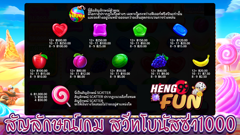 Pragmatic Play มีสูตร Sweet Bonanza 1000 ที่เรียบง่ายแต่ทรงพลัง ซึ่งยืมมาจากสูตรดั้งเดิม และเพิ่มรสชาติด้วยสิ่งใหม่สองสามอย่าง สล็อตไม่ได้อัดแน่นไปด้วยฟีเจอร์โบนัส และบูสเตอร์มากมาย แต่สนุก และมีส่วนร่วมอย่างเหลือเชื่อ ทดลองเล่นที่นี่ Heng99bet